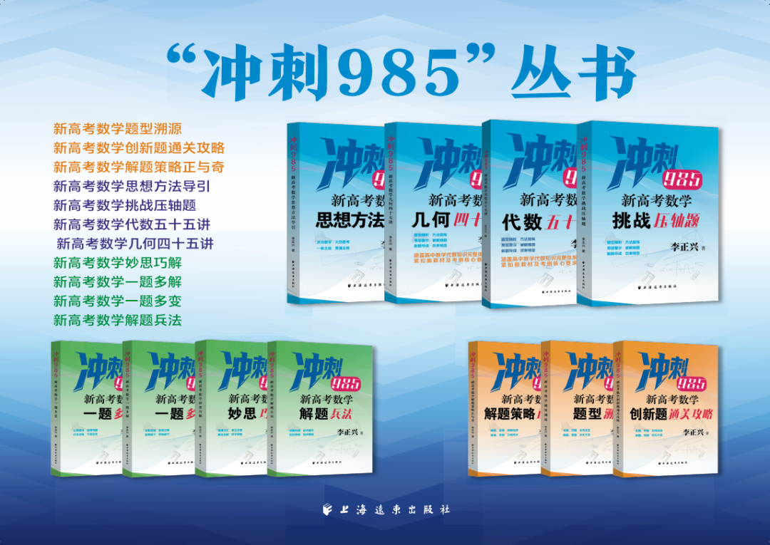 2025年上海书展期间,上海升学白玉兰直播间还将隆重推出李正兴近年来研究新教材、新高考、创新题攻略的心血制作——“冲刺985”丛书·新高考数学系列书籍。