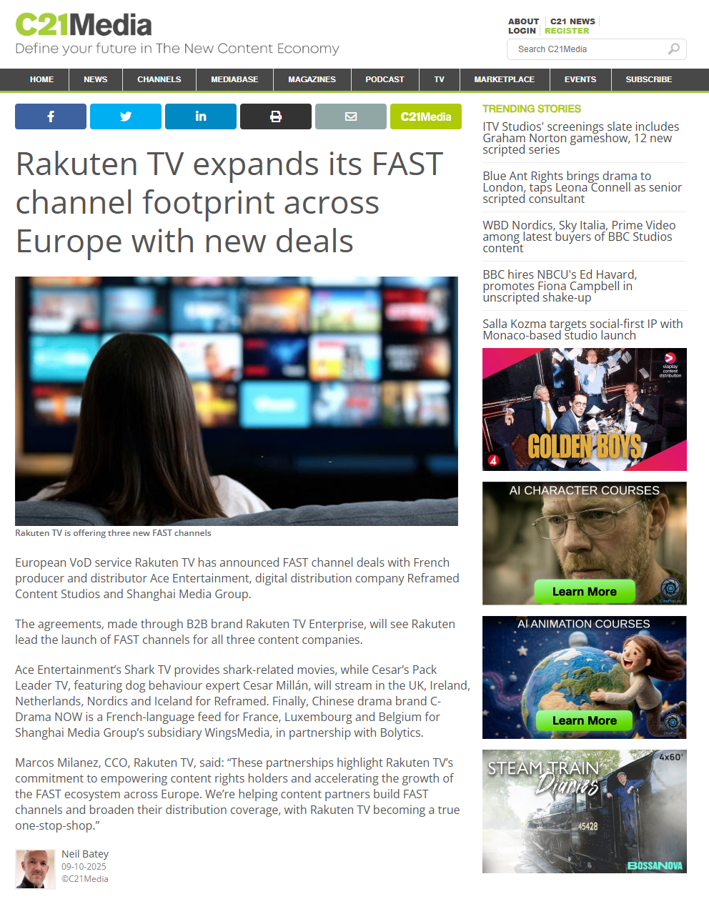 近年来,FAST(Free Ad-Supported Streaming TV)模式在欧洲市场日趋成熟,法国等欧洲主要市场的线性收视与本地化内容需求使其成为衔接传统电视与流媒体用户的重要形态。