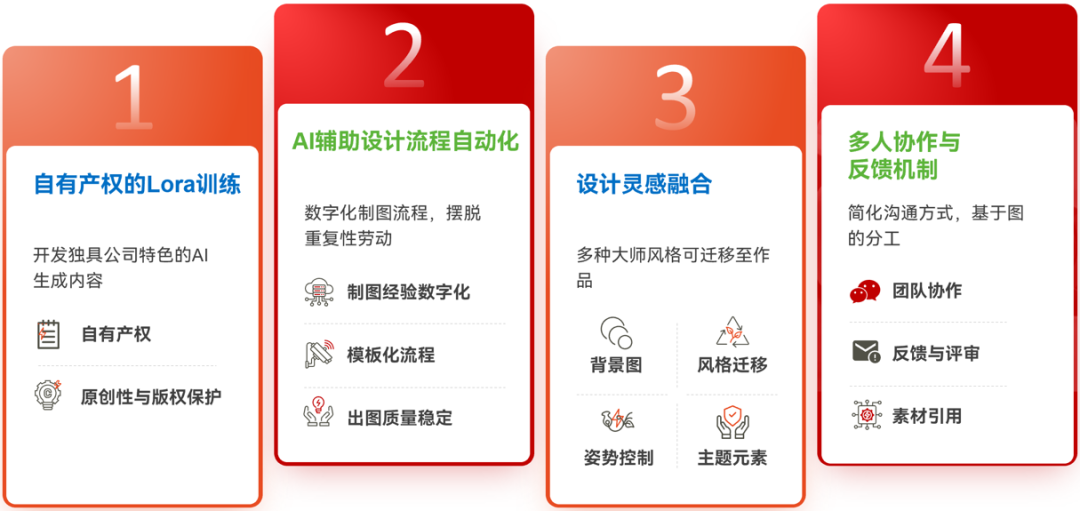 在提升生产质效方面,AIGC展现出巨大潜力。平台通过AI辅助设计流程,助力设计效率预计提升至少30%,图片分辨率提升至少50%。这意味着设计师可以在更短时间内创作出更高质量的视觉内容,同时大幅降低设计成本,为公司创造更大商业价值。