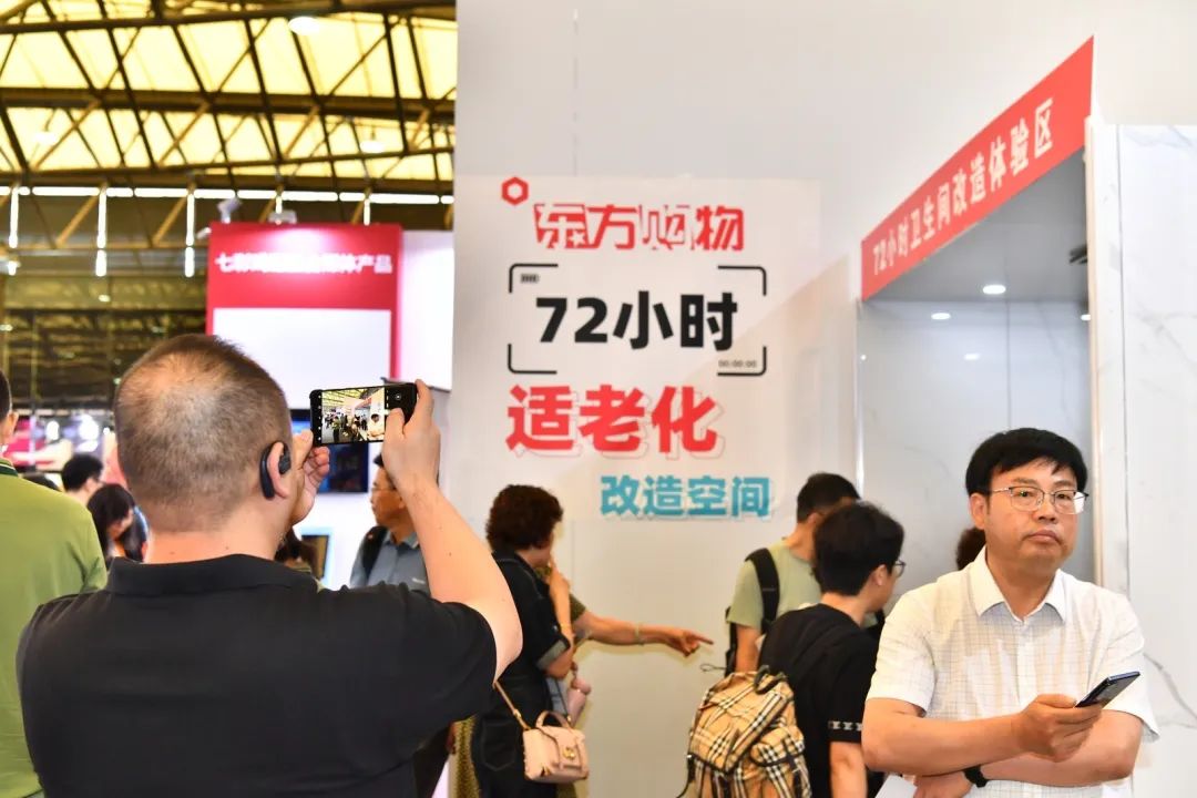 在银发生活节现场,适老化改造区吸引不少人驻足。“快装式卫生间”是国内首发的72小时卫生间快装服务,可以最大限度减少家居改造对正常生活的影响,帮助老年人轻松拥有舒适、安全的生活环境。