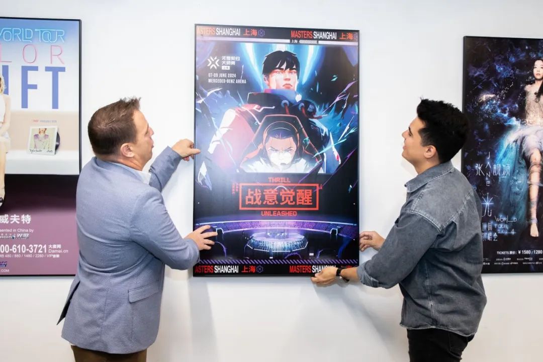 赛事开幕前,梅赛德斯-奔驰文化中心总经理Mike Cerha向《无畏契约》电竞全球负责人Leo Faria及腾竞体育总监、《无畏契约》电竞中国区总负责人Eric颁发了“无畏巅峰奖”及定制奖杯,并共同完成了海报上墙仪式,庆祝《无畏契约》冠军巡回赛在梅奔中心举办其在中国的首次国际赛事。