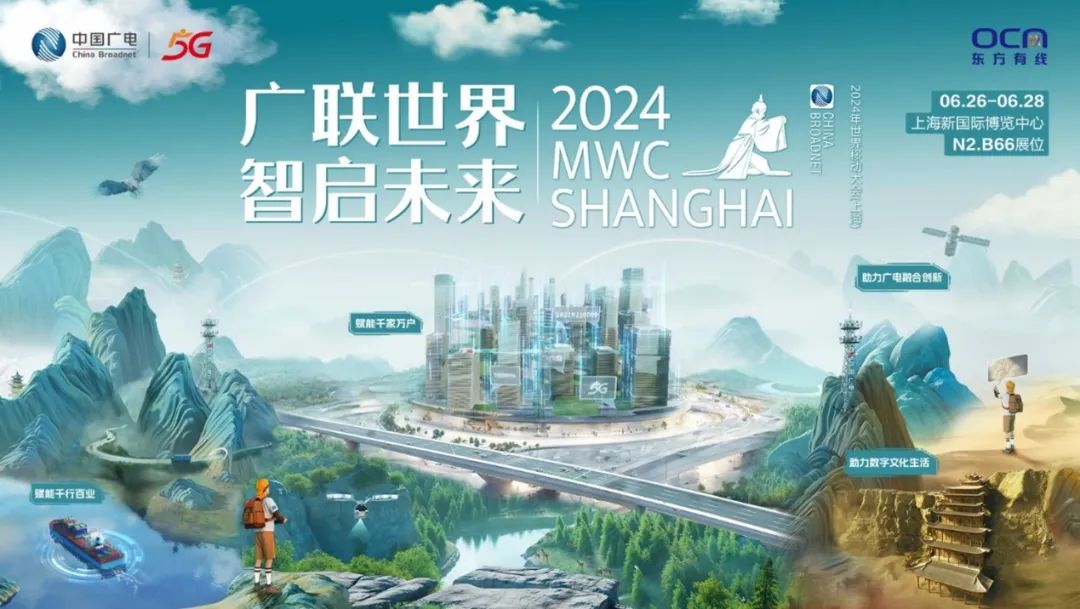6月26日,2024年世界移动通信大会(英文名:Mobile World Congress 简称:MWC)在上海开幕。东方明珠新媒体旗下东方有线助力中国广电,以“广联世界 智启未来”为主题,在“广电融合创新” “数字文化生活”“赋能千家万户和千行百业”三个维度,带来多项5G通信技术成果。其中,东方有线携手第一财经打造的广电5G演播室、4K超高清、智慧酒店、智慧教育等多个应用案例吸引了众多目光,不仅展现了台网融合的新风貌,更激发了广电5G赋能千行百业的无限想象。