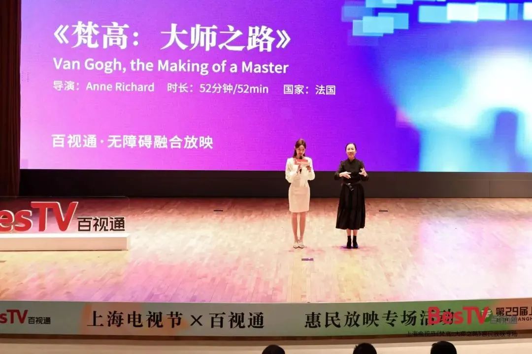 才饮金爵酒,又逢玉兰开。第二十九届上海电视节期间,东方明珠新媒体旗下百视通作为电视节官方指定电视新媒体合作伙伴·线上展映平台,在IPTV、互联网电视、有线电视平台全程直播第二十九届上海电视节“白玉兰绽放”红毯仪式及颁奖典礼,线上展映平台播出包括《阿斯伯格女孩》《梵高:大师之路》《猞猁守护者》三部入围佳作在内的十部海内外优秀影视作品。线下,百视通举办《梵高:大师之路》惠民无障碍融合专场导赏活动,邀请听障群体参与这个光影的节日,感受城市的温度。