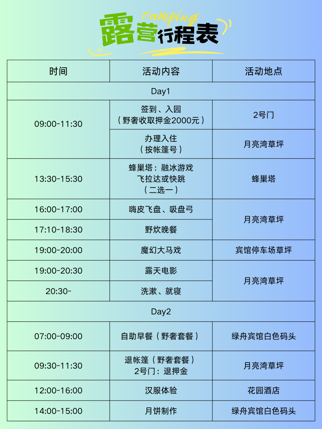 当传统中秋赏月邂逅现代露营的新潮流,将绽放出怎样浪漫而独特的光彩?9月15日至17日,东方绿舟精心准备了湖畔露营、汉服妆造、月饼DIY、魔幻马戏等丰富多彩的阖家欢活动,更为毛孩子们打造了宠物友好的中秋惊喜游园日,快来东方绿舟赴一场月圆之约吧!