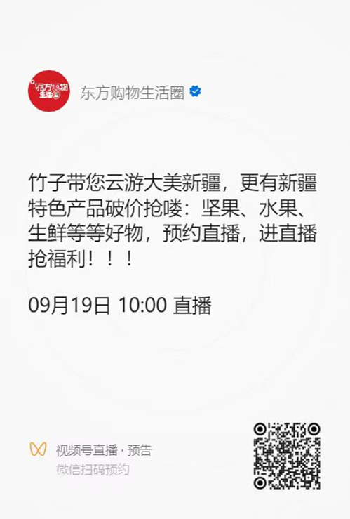 本月,东方购物受到新疆维吾尔自治区喀什地区商务局的邀请,将作为新疆好物推荐官深入喀什古城,于9月19日至21日推出小屏直播,并于9月19日10点至11点,在东方购物12频道推出“大美新疆,公益助农”专场节目,大小屏联动直播,全媒体营销助力新疆农产品市场拓展,同时也为新疆农民的辛勤劳动带来实实在在的回报。