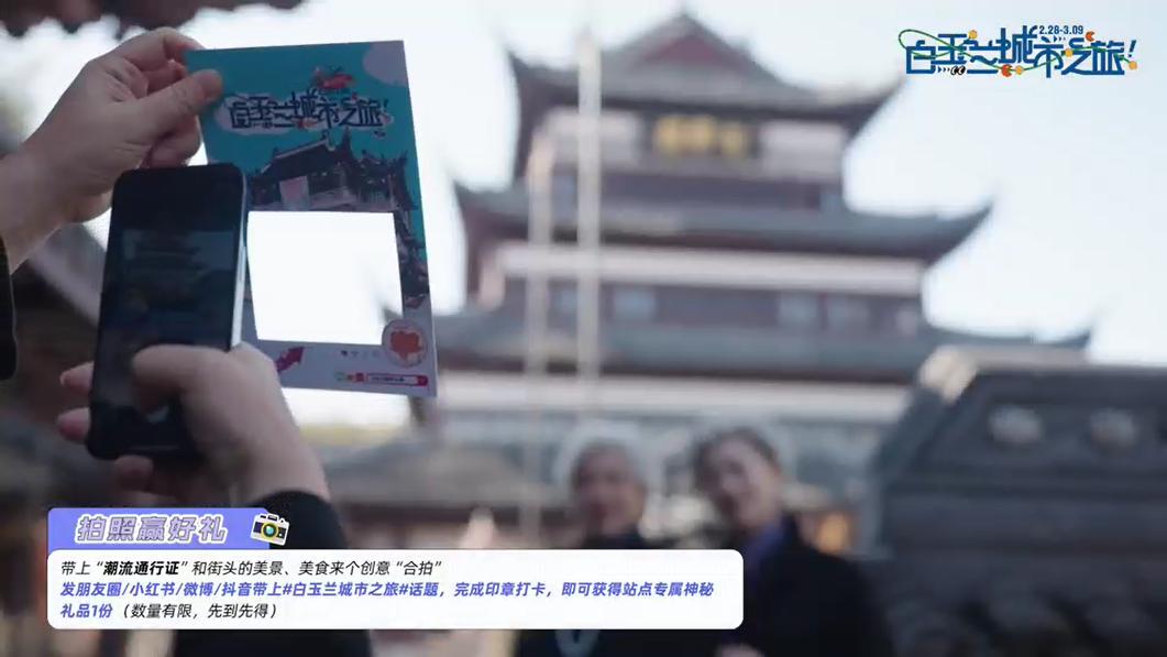 手持通行证,与复古建筑同框、和地道美食合拍!发布朋友圈/微博/抖音加话题#白玉兰城市之旅#,晒出你的创意大片,站点专属好礼即刻到手!(手速要快,限量不等人!)